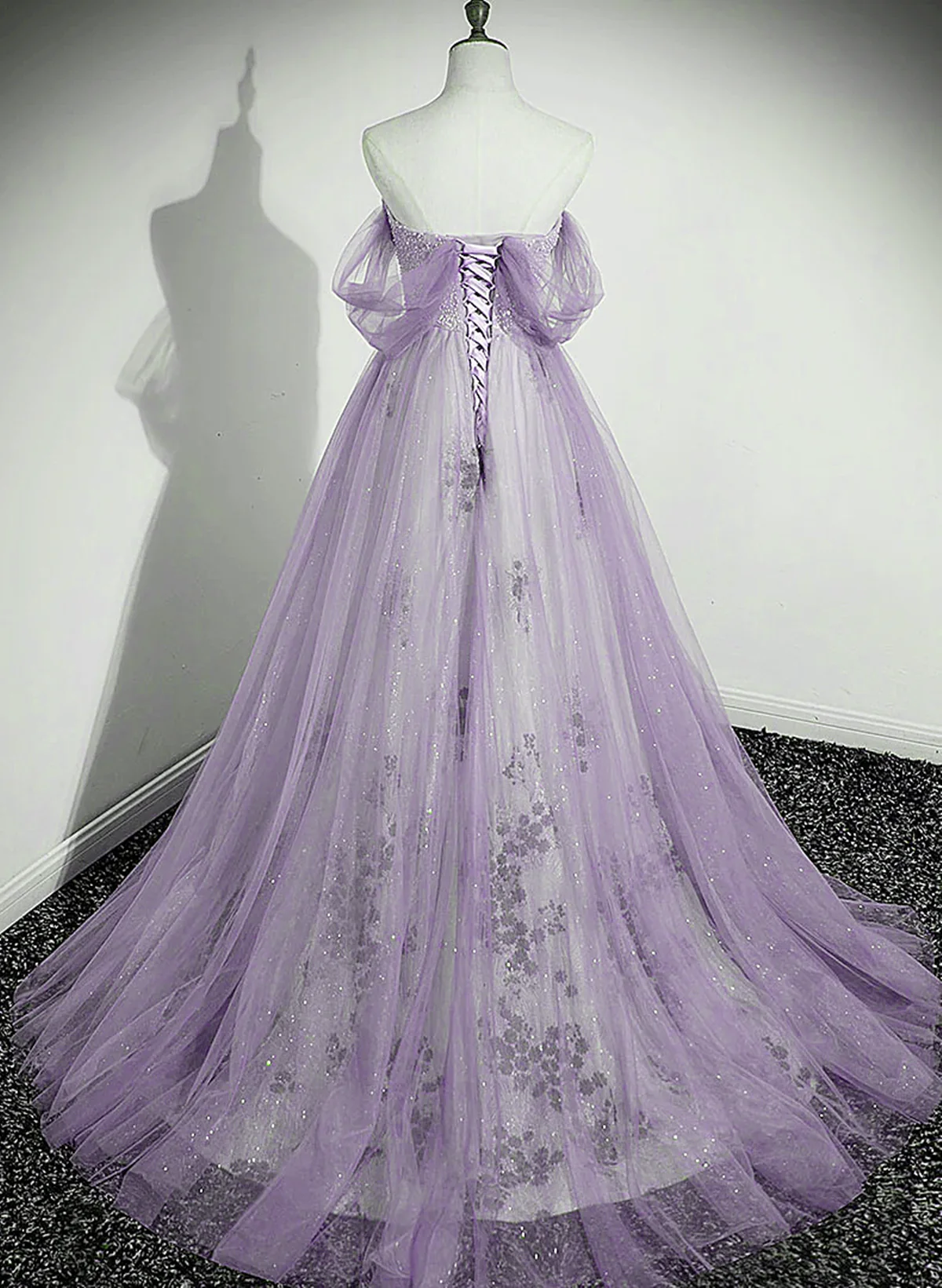 A-Line Light Purple Beaded Sweetheart Evening Dress, Light Purple Prom Dress fg4416