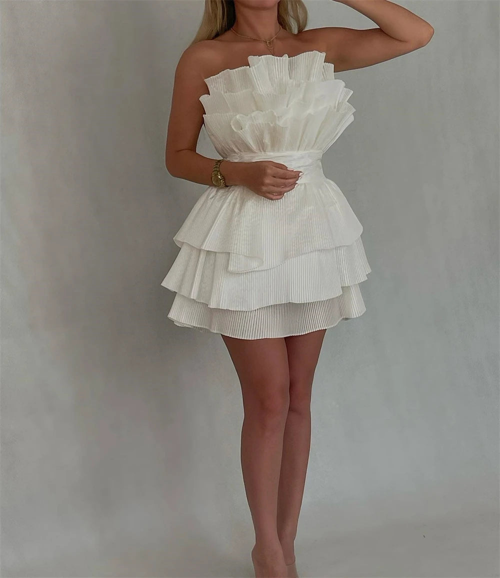 A line Strapless Tiered Short Homecoming Dress Party Gown fg8078