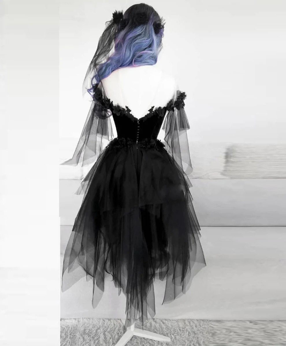 Black tulle lace short prom dress black lace cocktail dress fg1882