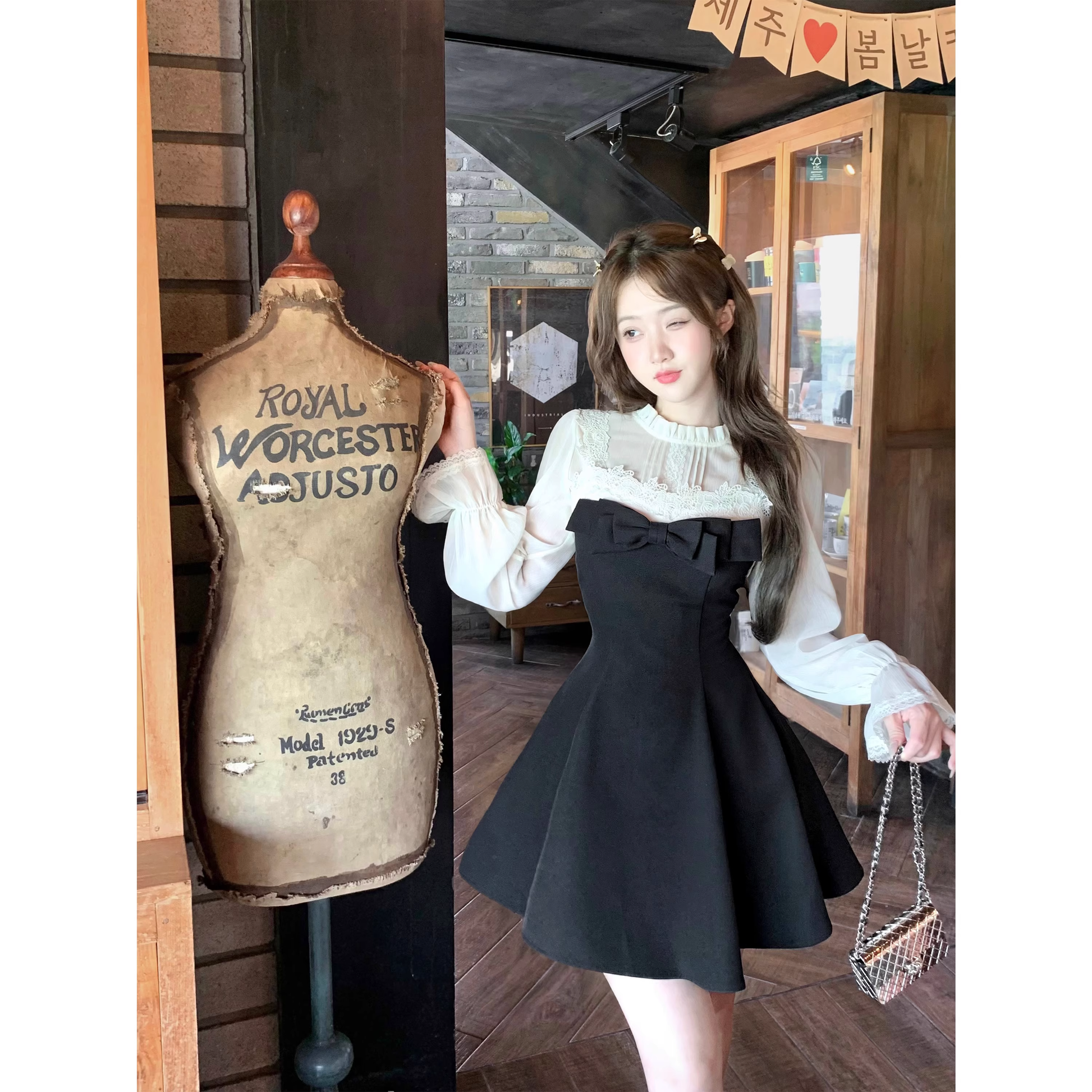 Lace little black dress and shirt two-piece set A91