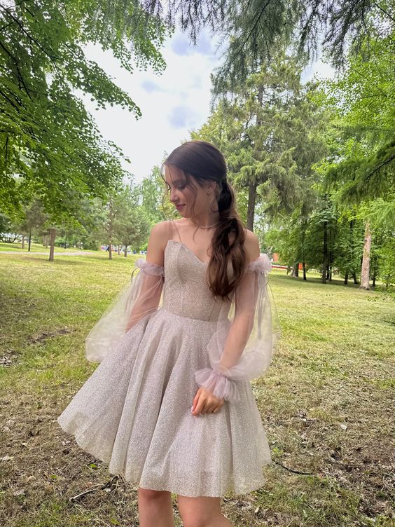 Long Sleeves homecoming Dress Short Prom Dress fg4986