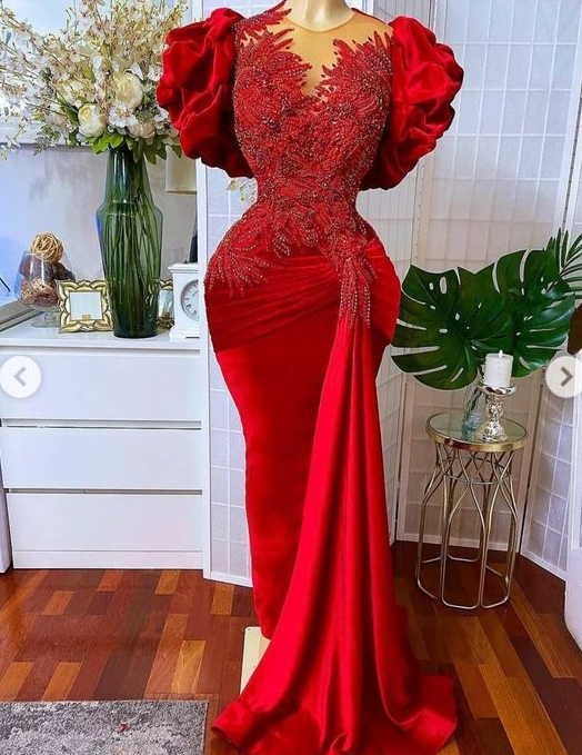 Mermaid Beaded Formal Evening Red Prom Dress fg1852