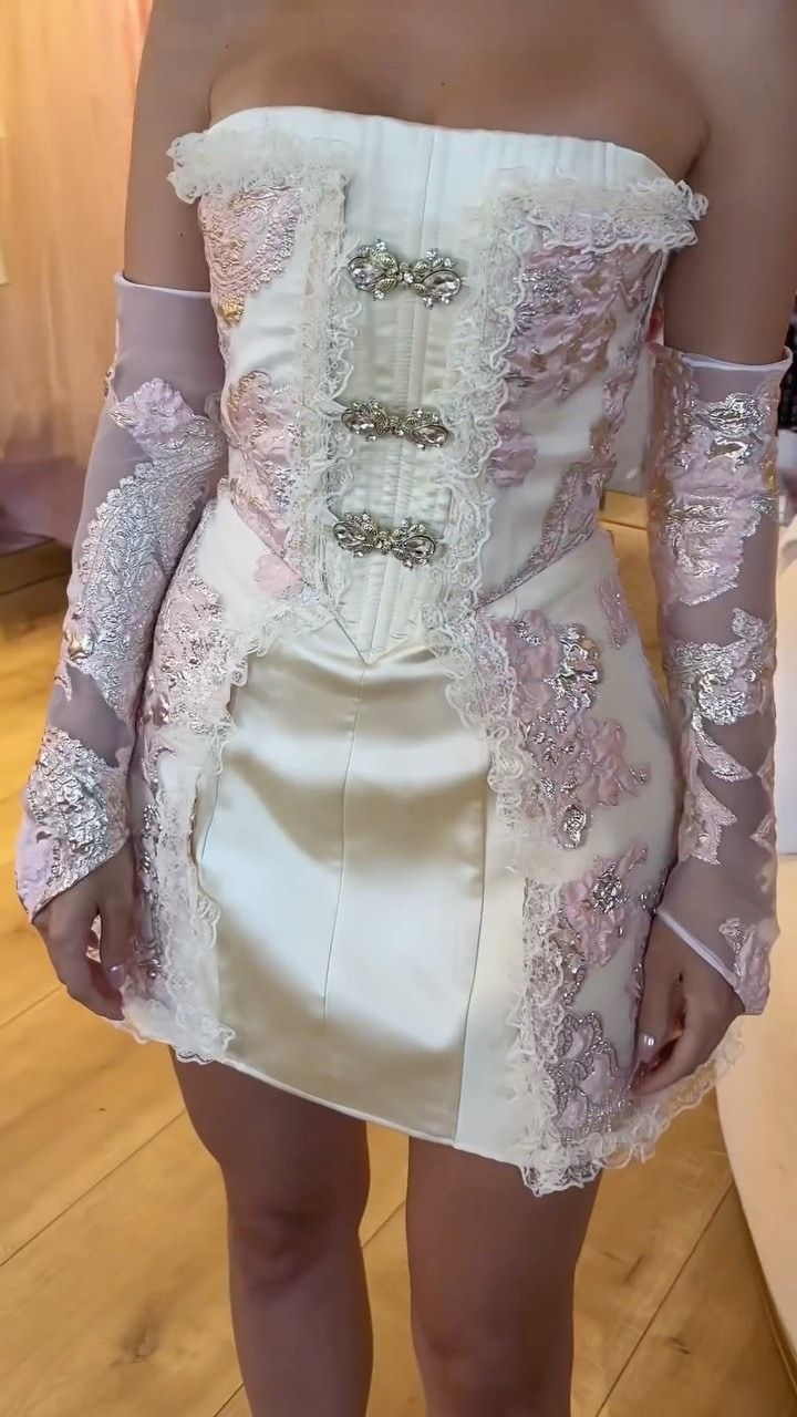 New Arrival Strapless Homecoming Dress Party Dress With Gloves fg7563