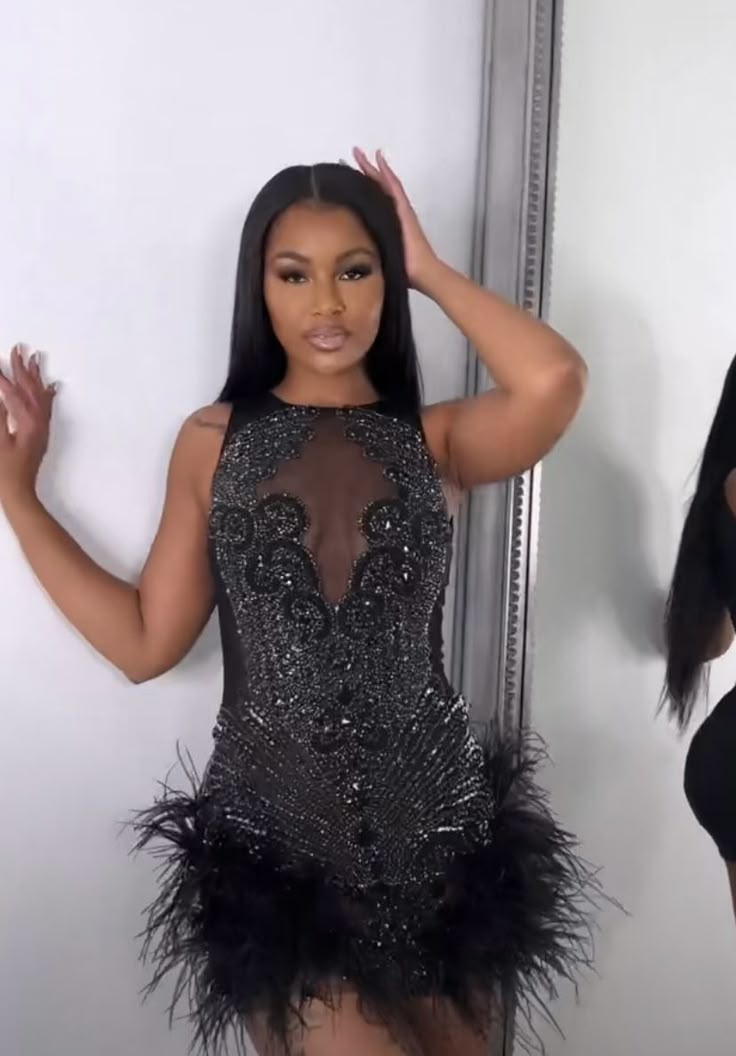 New Design Black Short Prom Dress Luxury Beaded Feather Birthday Party Cocktail Gowns fg8151