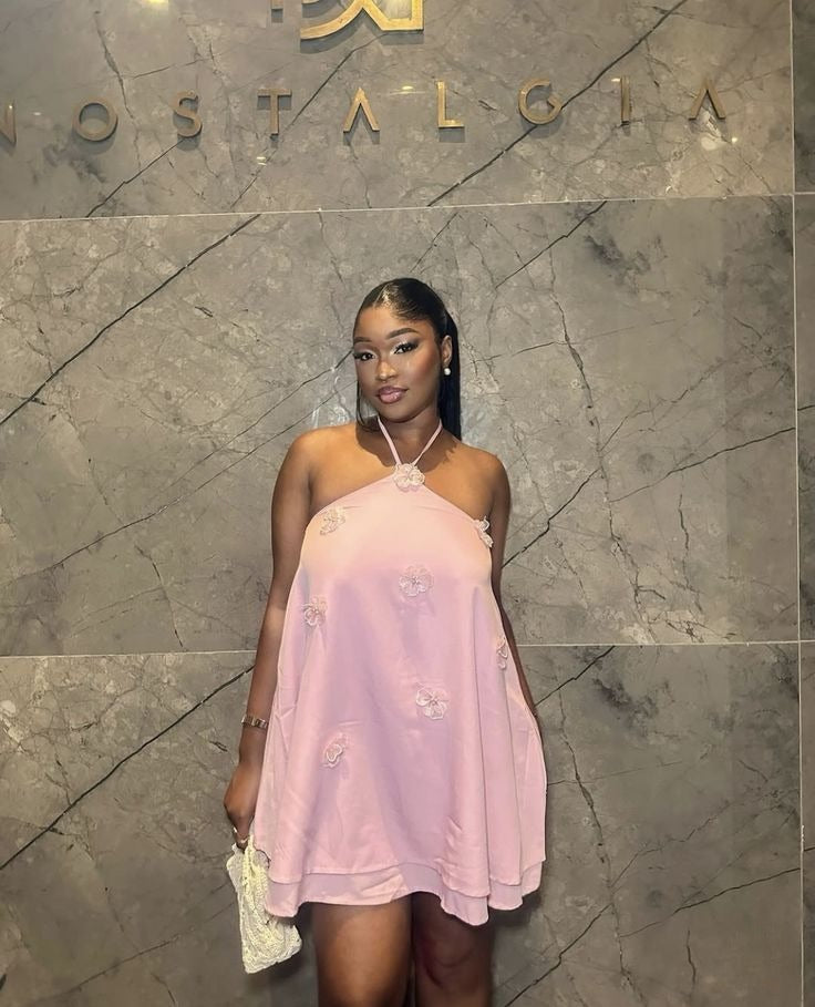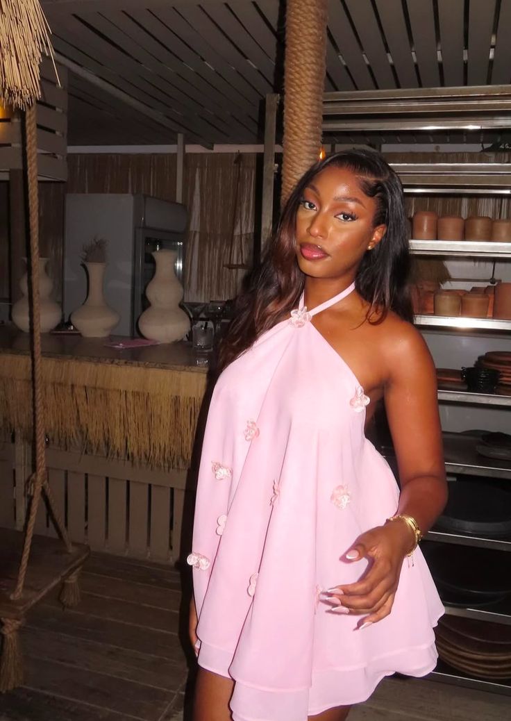 Pink Asymmetrical 3D Flower Halter Mini Dress, Elegant Summer Women's Party Dress fg8187