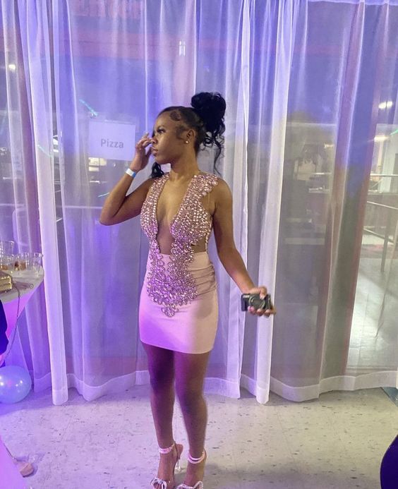 Pink Beaded Short Prom Dress, Homecoming Dress fg3910