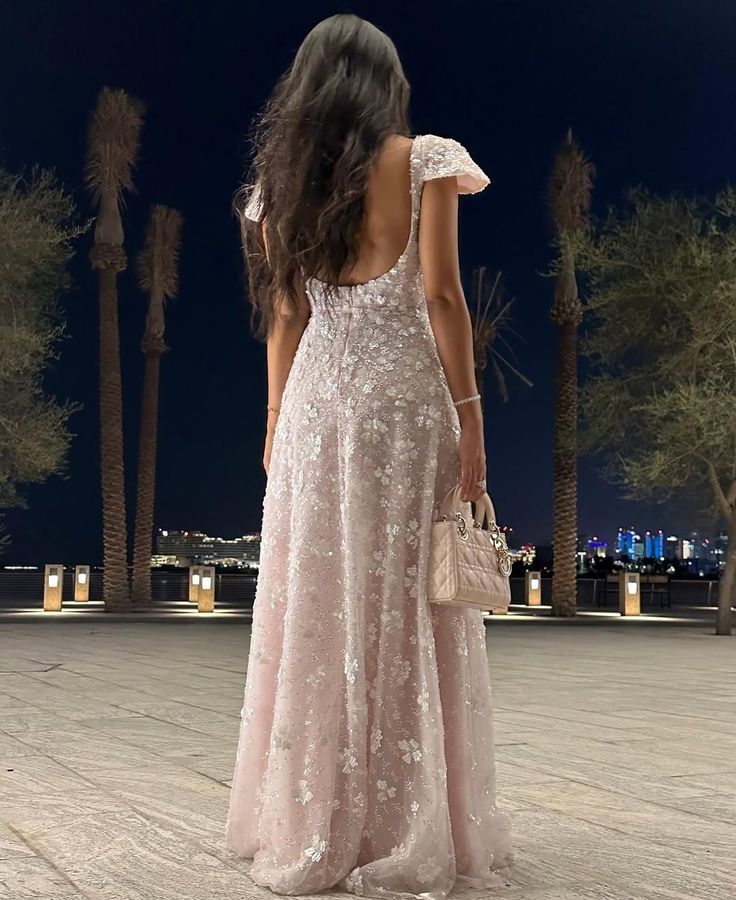 Pink Cap Sleeves Elegant Long Evening Dress Prom Dresses fg7795