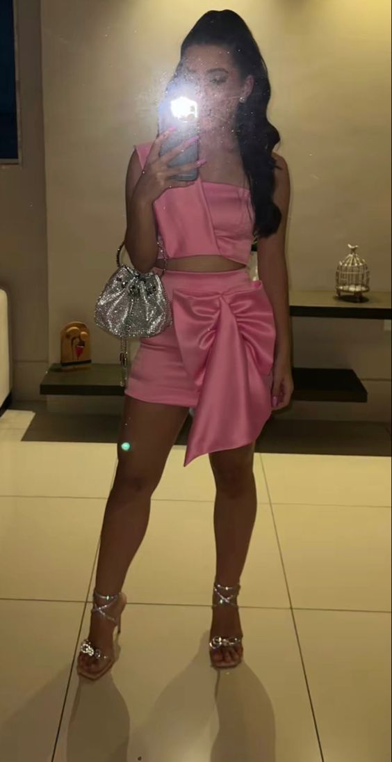Pink Two Piece Sheath Short Prom Dress Homecoming Party Dress fg5538