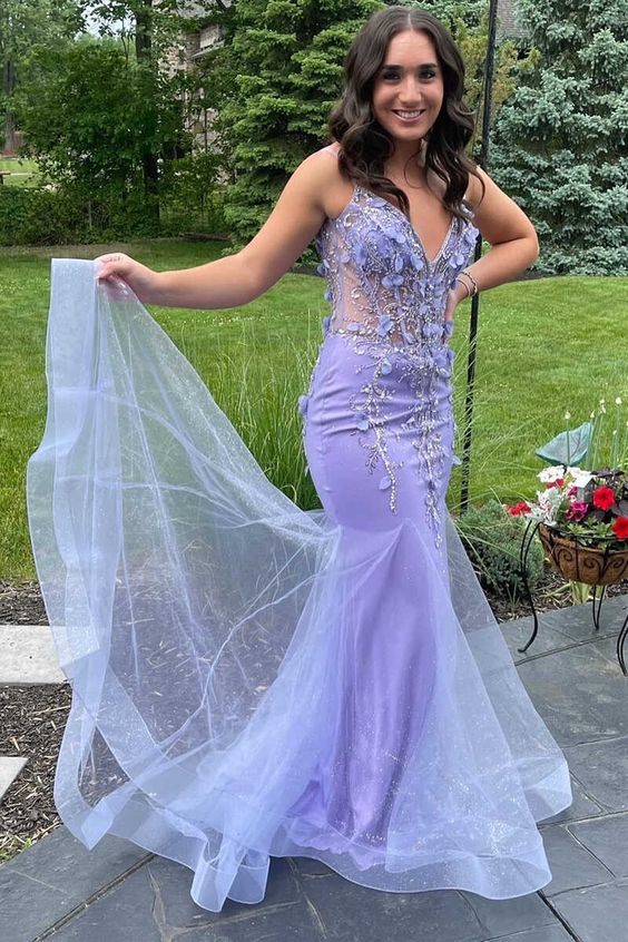 sexy lavender mermaid v-neck sleeveless floor-length appliques prom dresses fg1529