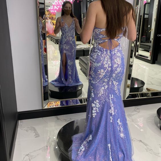 Sexy V neck Purple Mermaid Long Formal Prom Dress fg5197