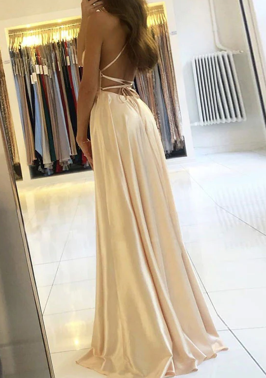 Simple champagne satin long prom dress champagne formal dress fg1652