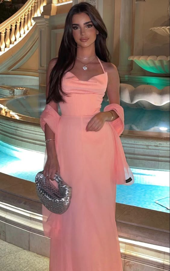 Spaghetti Straps Halter Pink Evening Dresses Formal Gown With Shawl fg6747