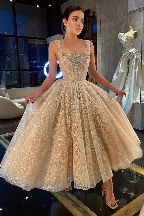 Spaghetti Straps Scoop Beads Sparkly Prom Dress fg403