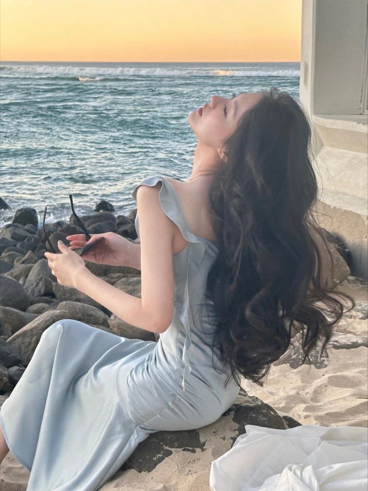 Vintage Elegant Satin Strap Midi Dress Women Summer Casual Party Dress fg5846