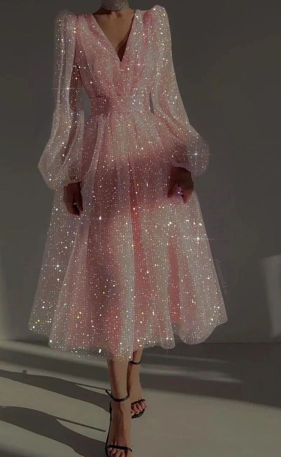 Women's Evening Dress V-Neck Puff Long Sleeve Female Dresses New Party Club Shining Dress fg4560