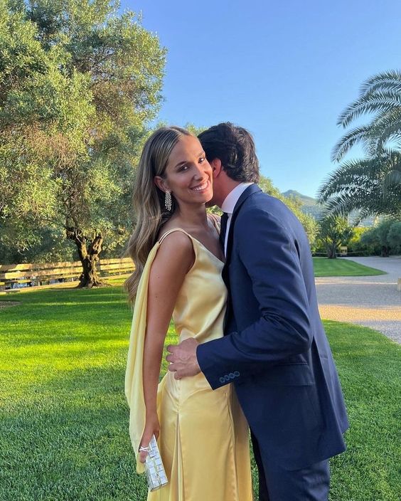 Yellow Satin Evening Dress for Formal Occasions, V-neck A-line Spaghetti Strap Floor Length Elegant Prom Dress fg5723